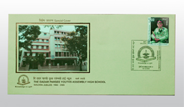 A special cover with a special postmark (cancellation) is released on important events, such as the celebration of the jubilee year of an institution, which has contributed much towards the development of society. The Dadar Parsee Youths Assembly High School has indeed spread the ‘Light of Knowledge’ to its surrounding areas. The school has completed 50 years.